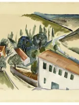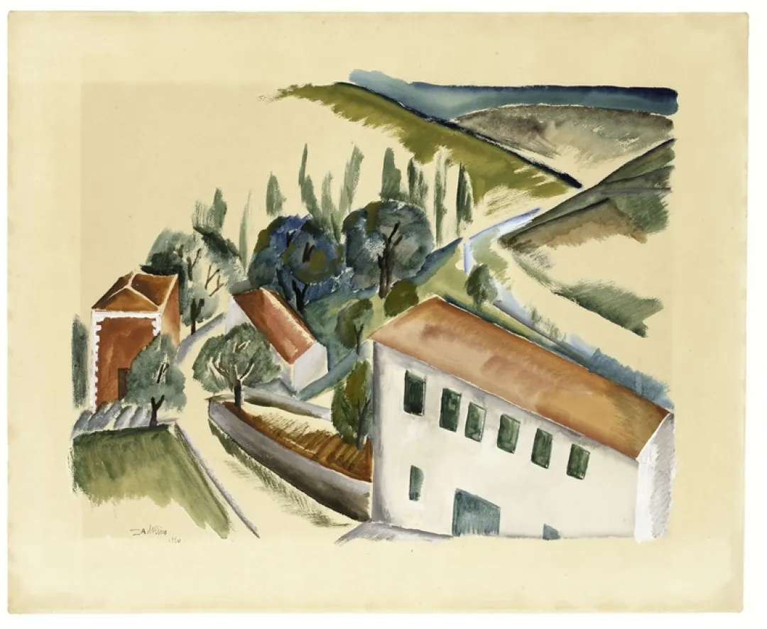 S'y opère pour lui, au contact de la nature, un retour à la vie et à la création. Zadkine y peint un ensemble de gouaches et d'aquarelles des paysages, d'inspiration cubiste, qui marque le début de son oeuvre graphique, dont cette gouache intitulée « Village ». Emu par la découverte des vieux villages et de la campagne harmonieuse qui les environne, Zadkine prend plaisir à créer des compositions animées par les fortes obliques des bâtiments, des routes et des collines. Rien de réaliste ni de stable dans ces paysages aux lignes de fuite arbitraires où il joue avec les volumes et les formes qu’il assemble d’une façon très libre. L’influence du cubisme est évidente dans cette manière très syncopée de recomposer la réalité. C’est aussi sous le climat lumineux du Quercy qu’il découvre le plaisir de la couleur.