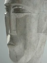 Elle est emblématique de sa production des années d’après-guerre. Avec cette tête à l’allure austère, Zadkine pousse la stylisation des formes à l’extrême. Simplification des plans. Suppression de certains détails, disproportion de ceux retenus (protubérance du crâne devenant heaume, allongement de l’arête du nez, aplatissement de la face, géométrisation de l’arcade sourcilière, exagération du sillon naso-labial. L’art de Zadkine est ici très proche de celui de Modigliani. Les deux artistes se connaissaient bien. Ce n’est pas un art de l’imitation de la nature, de la mimésis, mais de reconstruction libre des formes, d’invention.
