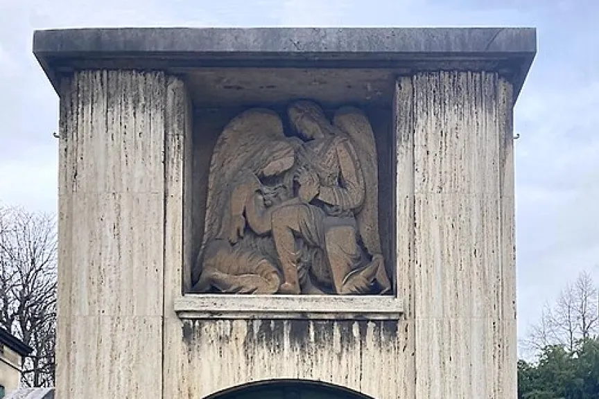 Rendez-vous tout d’abord au cimetière de Passy (2 Rue du Commandant Schloesing, 16e arr.) : dans la 13e division se trouve la tombe du marchand et collectionneur Paul Guillaume (1891-1934), figure clé du monde de l’art parisien du début du XXe siècle. Son monument funéraire est surmonté d’un bas-relief en pierre exécuté par Zadkine en 1939, à la demande de la veuve de Paul Guillaume.