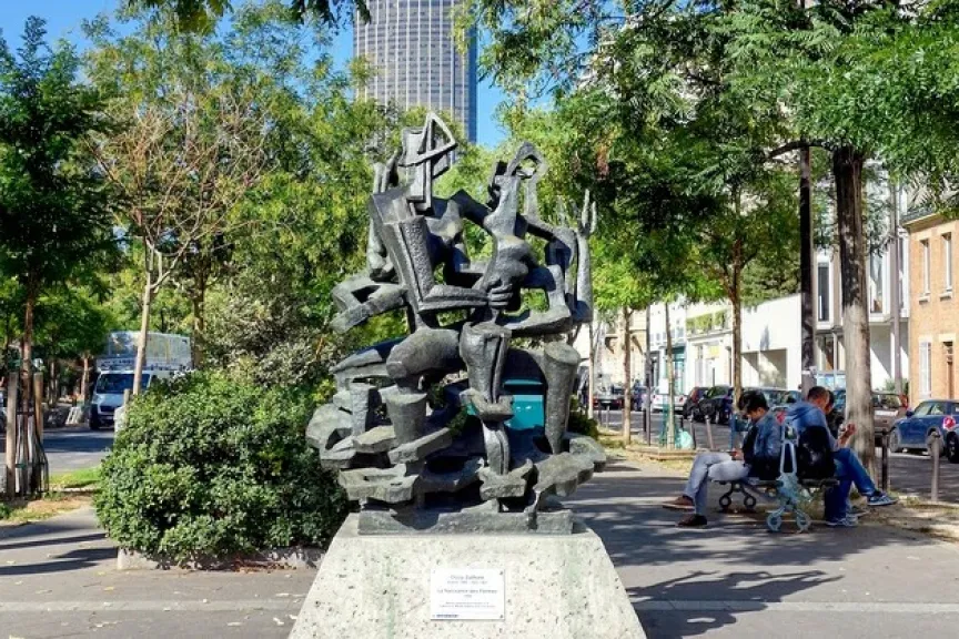 Direction ensuite, à une dizaine de minutes à pied, l’allée Georges Besse (14e arr.), à l’angle du boulevard Raspail et du boulevard Edgar Quinet. C’est là que se trouve, depuis 2012 et un dépôt du musée, une édition en bronze de La Naissance des Formes (1958), une œuvre qui illustre les recherches de Zadkine, après la Seconde Guerre mondiale, sur les notions de plein et de vide.