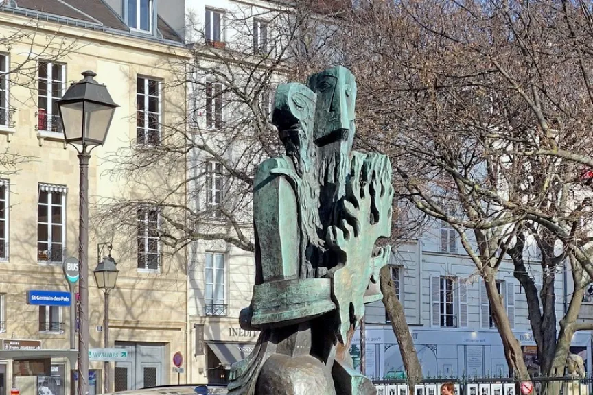 La prochaine étape, également accessible en une trentaine de minutes à pied ou plus rapidement en transports en commun, est au cœur du quartier de Saint-Germain-des-Prés, sur la place Sartre-Beauvoir (6e arr.). C’est là qu’est exposé un exemplaire en bronze de Prométhée (1955-1956), dont le musée présente une version en bois. L’œuvre représente le personnage éponyme de la mythologie grecque apportant le feu aux hommes. Cette édition en bronze, fondue en 1964, appartient au musée ; elle a d’abord été installée rue Rambuteau, en face du Centre Pompidou, en 1982, avant d’être déplacée ici à la fin des années 2000.