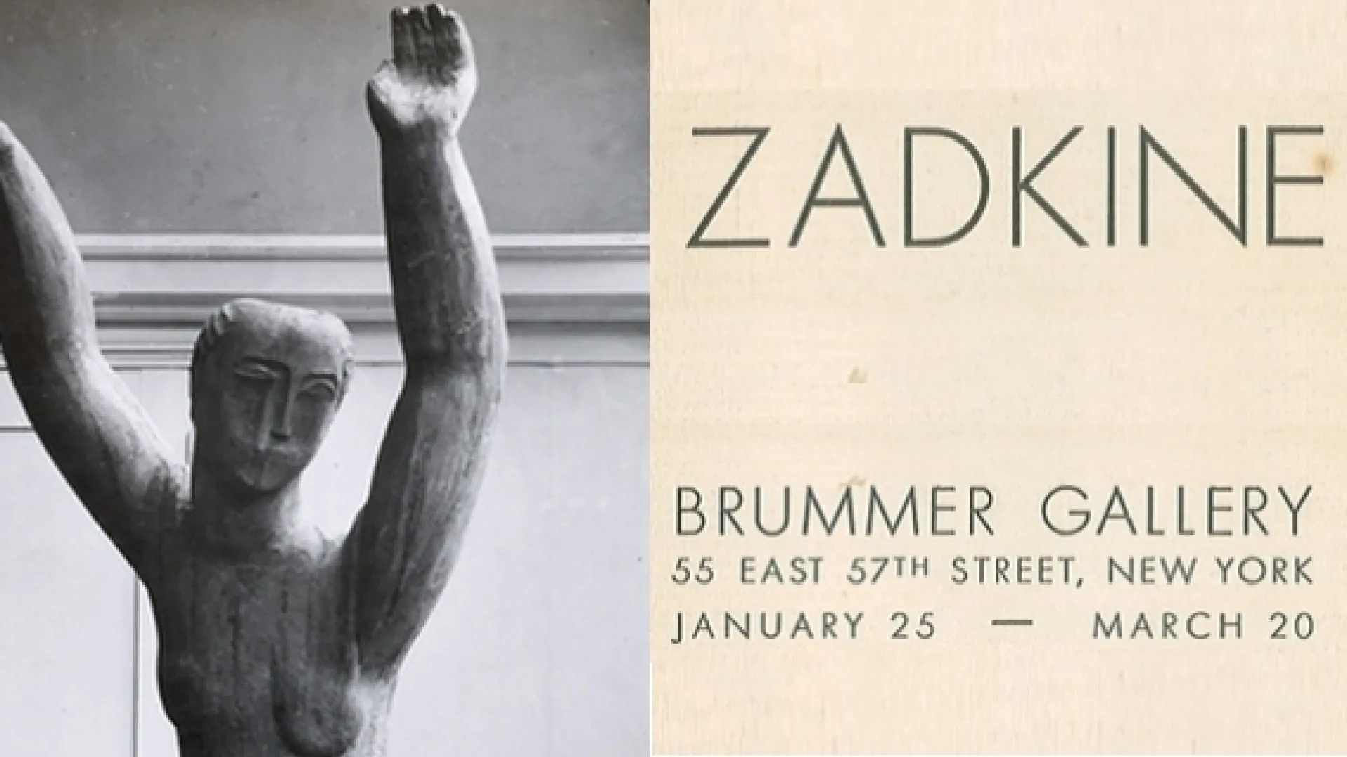 Hongrois, arrivé à Paris au début du XXème siècle, Joseph Brummer (1883-1947) abandonna sa carrière de sculpteur pour le commerce d’art. Il ouvrit une galerie boulevard Raspail, spécialisée dans l’art africain et océanien et fit également connaître Le Douanier Rousseau. En 1914, il émigra en Amérique et ouvrit une galerie à New York. Grand marchand d’art, il fournit des œuvres aux plus grands collectionneurs américains Henry Walters, William Randolph Hearst, Bradley Martin. A sa mort, une grande partie de sa collection fut achetée par le Metropolitan Museum of Art. Dès les années trente, il décide de montrer la sculpture européenne : Brancusi, Duchamp-Villon, Matisse, Gargallo, Lipchitz. En 1937, du 25 janvier au 20 mars, il organise une exposition consacrée à Zadkine.
