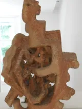 Pour la composition de cette figure, Zadkine a utilisé une terre très fortement « chamottée » et donc très granuleuse. Les volumes ont été taillés, probablement à l’aide de mirettes, dans la masse de la terre. Après cuisson, l’œuvre a été recouverte d’une peinture épaisse, beige et ocre rouge, légèrement lustrée avec des rehauts gris tendre, qui lui donne un aspect de surface bien particulier. Cette composition en terre cuite entretient un rapport étroit avec la sculpture monumentale, en bronze, Statue pour une montagne qui est exposée dans le jardin du musée, dont elle apparaît comme l’esquisse préparatoire même si rien ne permet de dire que Zadkine lorsqu’il réalisa cette terre avait déjà l’intention de la transposer à échelle monumentale.