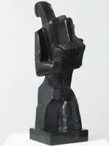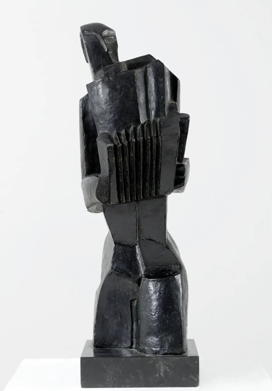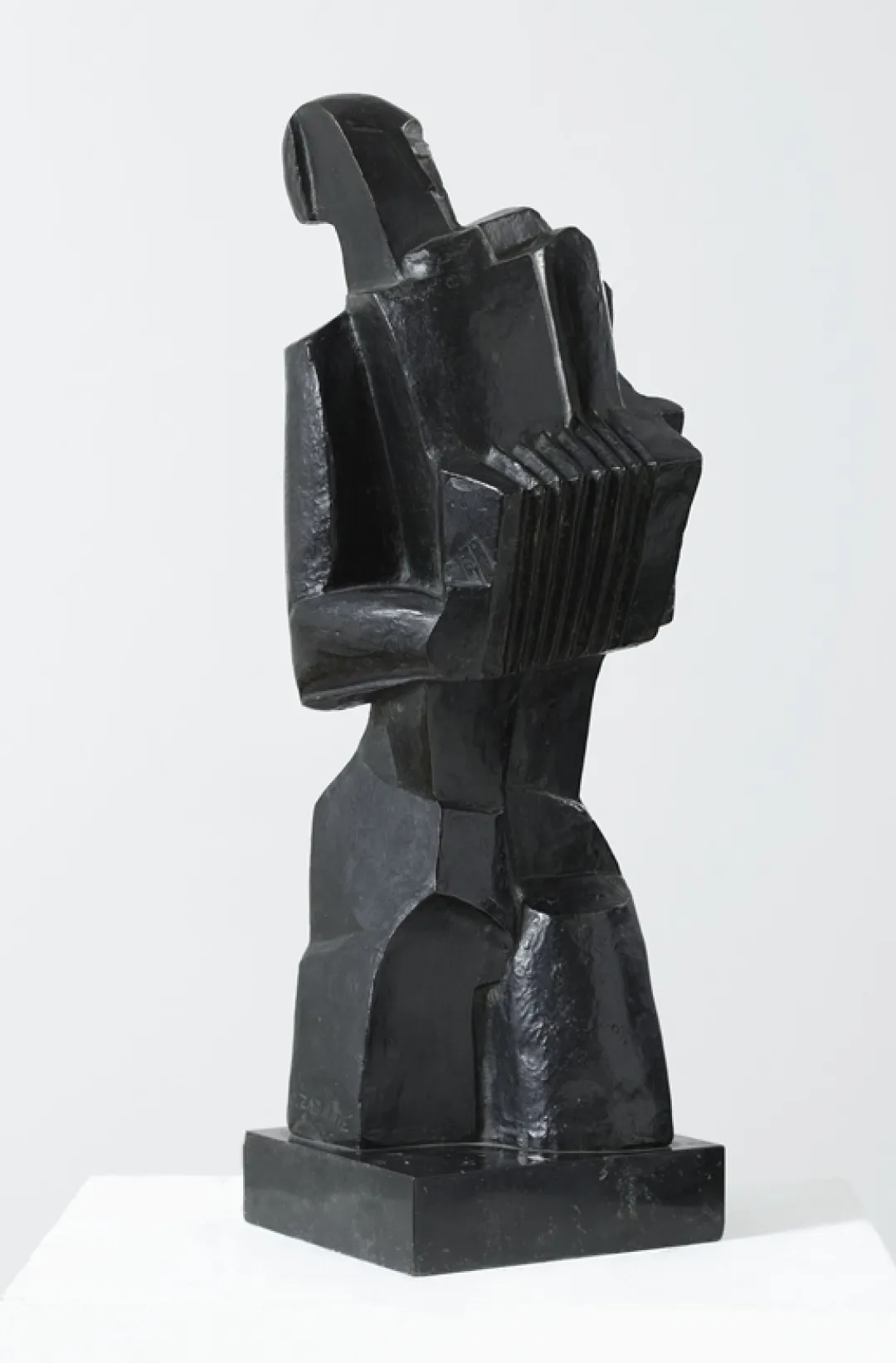 This work displays a clearly Cubist orientation. Zadkine recognised the influence which the paintings of Picasso and Braque had on him. In this context, the accordion is more than a simple accessory; it is an artistic element at the service of an aesthetic: with its interplay of lines, it structures the composition. The sharp edges of the different planes accentuate the geometrical effect. Convex forms appear for the first time in this sculpture, which would become one of the formal characteristics of the alternation between concave and convex forms which he perpetuated in his work. This Accordion PLayer is one of Zadkine's very first works to have been cast in bronze.