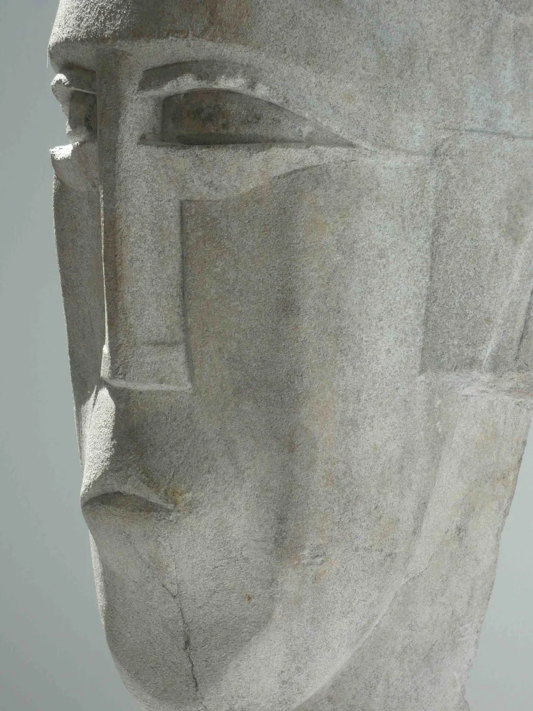It is emblematic of his work of the post-war years. With this austere-looking head, Zadkine pushes stylization of form to its extremes. Simplification of planes. The removal of certain details and disproportionality of those retained (the protuberance of the skull which has turned into a helmet, the elongation of the bridge of the nose, the flattening of the face, the geometrization of the eyebrow arch and the exaggeration of the naso-labial fold). Here, Zadkine's art is very close to that of Modigliani. The two artists knew each other well. It is not an art of mimesis based on the imitation of nature, but on the free reconstruction of form, of invention.