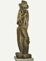 It was carved in a block of elm wood, - a species which Zadkine particularly liked and which today has almost disappeared. The thickness of the log is evident in the carving of its bulk, and textural effects are obtained through the visible traces of tools: straight, semi-flat and hollow gouges, and hatchet.